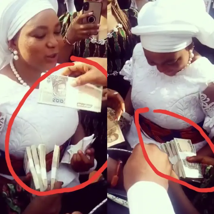 As we all know, actress Nkoli recently did her mum's birthday. Celebrities like Zubby Michael attended the burial. In a video which Zubby posted on his official Instagram page, he was spotted giving the actress bundles of N200 notes. See screenshots from the video below.