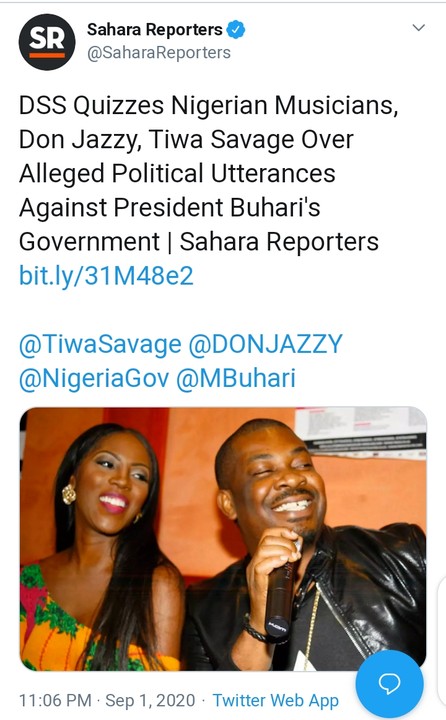 Review that Don Jazzy and Tiwa Savage were allegedly tested by the Department of State Security over remarks made against President Muhammadu Buhari whom they have now become undesirable with.