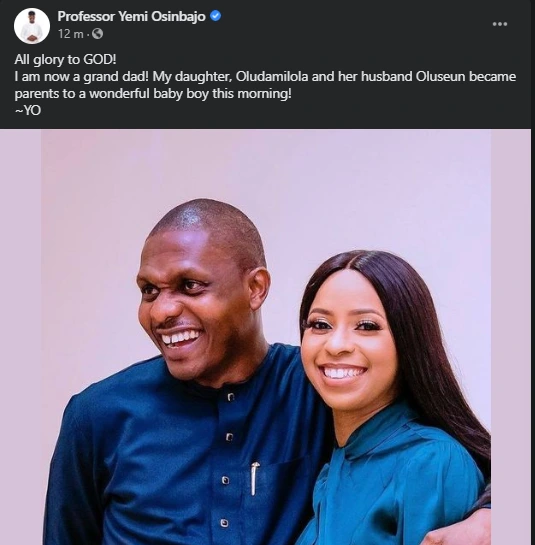 The Vice-president, Yemi Osinbajo SAN, today, went on his social media page to announce to his Nigerians and his numerous followers that his daughter, Oludamilola had given birth to a baby boy this morning.