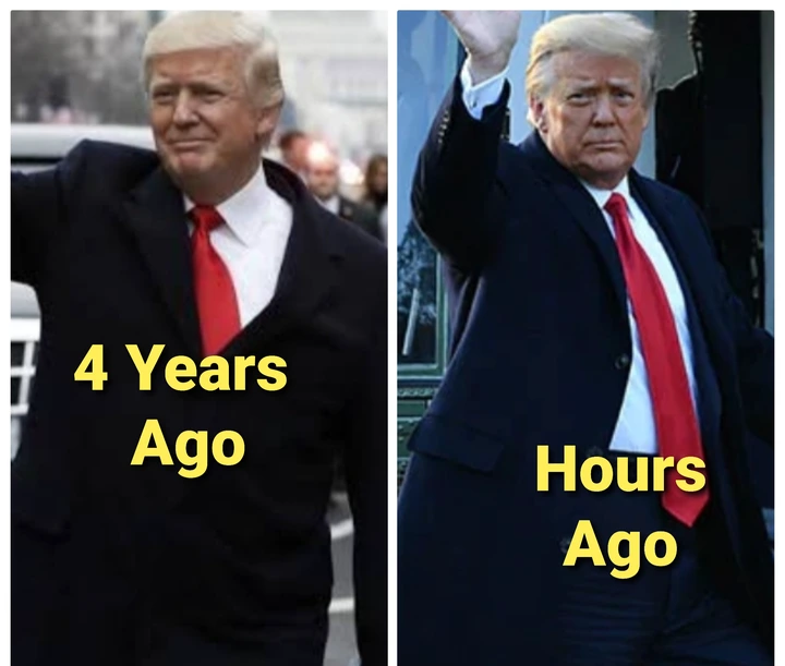 The transition of the democratic leadership of the United States' from that of former President Donald Trump to that of President Joseph Biden has come and gone leaving some fond memories one of which is that of how the immediate outgone President arrived the seat of government four years ago and how he left some hours ago.