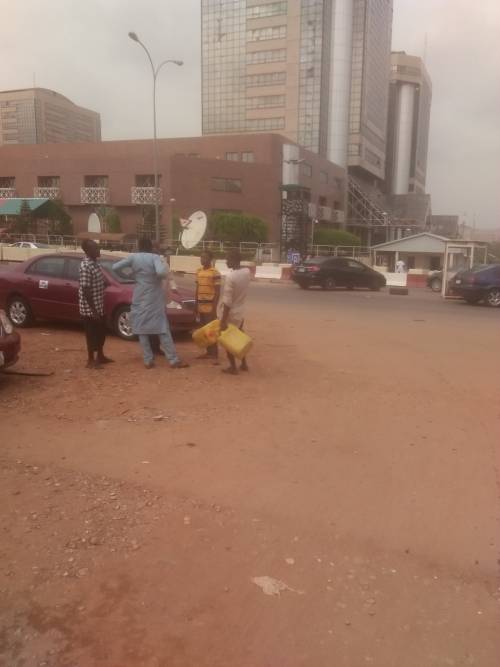 According to a report by SaharaReporters, black marketers have relocated to the Nigerian National Petroleum Corporation Headquarters, Abuja, selling fuel to motorists opposite the towers at exorbitant prices and in brazen fashion.
