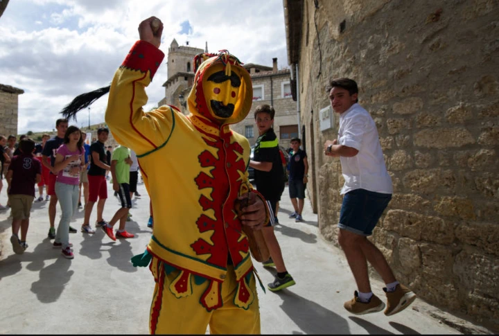 The festival is celebrated during spring by the Catholics in Spain. With men in red and yellow costume leaping over babies laid on mattresses on the streets of Castrillo de Murcia, a medieval village near Burgos, Spain.