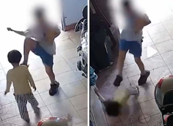 Surveillance footage captured the moment an 8-year-old boy violently stomped on the head of a 2-year-old girl to dispossess her of the snacks she was carrying.