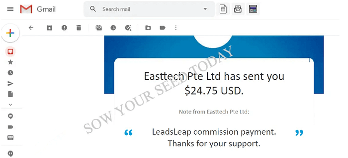 Here is the payment proof from Leadsleap.com, which indirectly confirms that Leadsleap.com is a reputable website and not a scam.